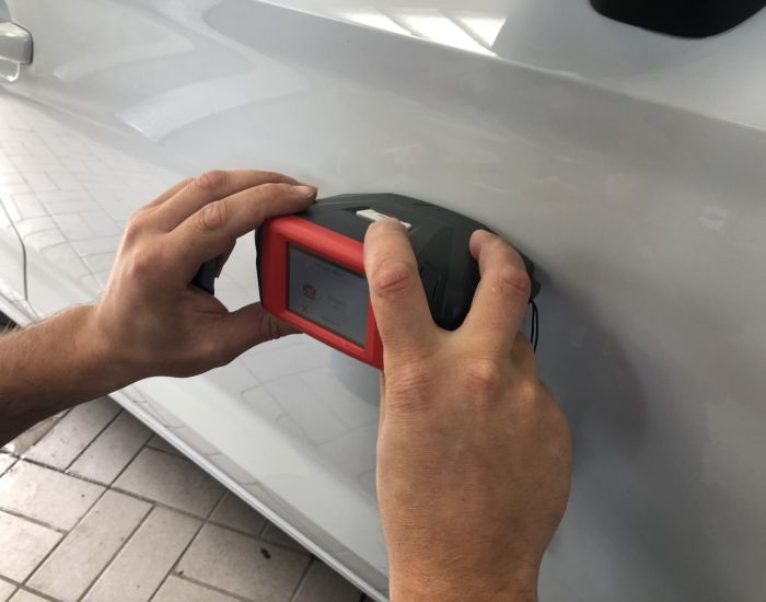 Um den exakten Farbton ihres Fahrzeuges zu bestimmen, wird dieser elektronisch ausgemessen. Somit sichern wir Ihnen zu, dass keine unliebsamen Farbunterschiede bei der Lackierung entstehen.