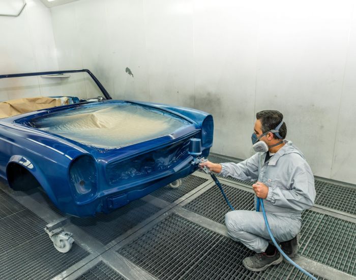 Unsere Spritzkabine ist technisch auf modernstem Standard, um effiziente und qualitativ hochwertige Einbrennlackierungen durchzuführen. Diese Arbeit sichert Ihnen eine Beständigkeit und Gleichmäßigkeit der Lackoberfläche.